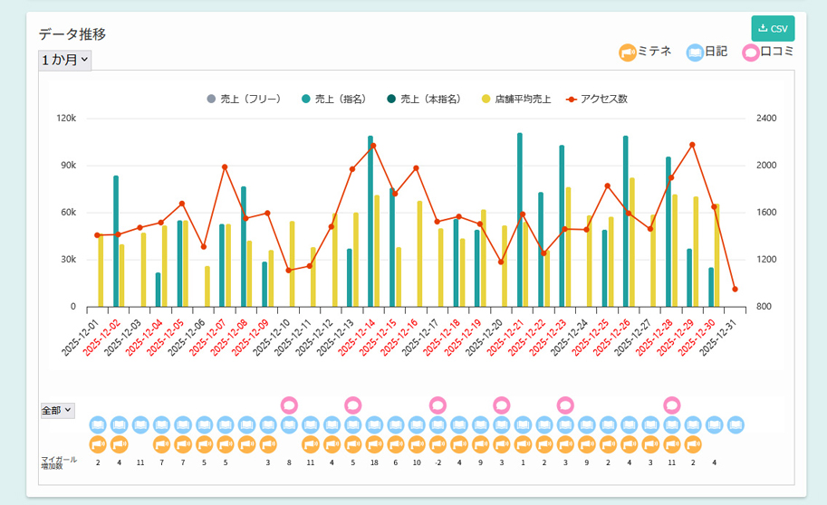 活動記録に紐づくアクセス数と売上の動きを、分かりやすく視覚的にキャストさんに伝えることができます!