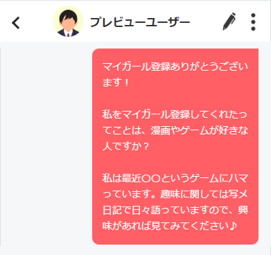 新規でマイガール登録してくれたユーザーに、お礼や自己紹介をしたい時