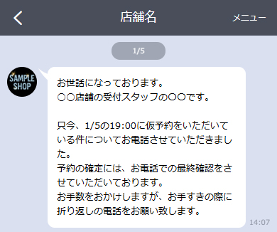 仮予約受付後の折り返し電話がユーザーに繋がらなかった際に、チャットに『連絡しましたよ』とメモを残したり…
