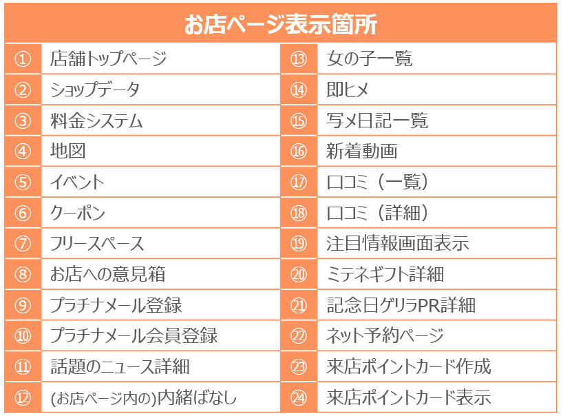 店舗ページ内…閲覧しているお店に在籍している女の子表示