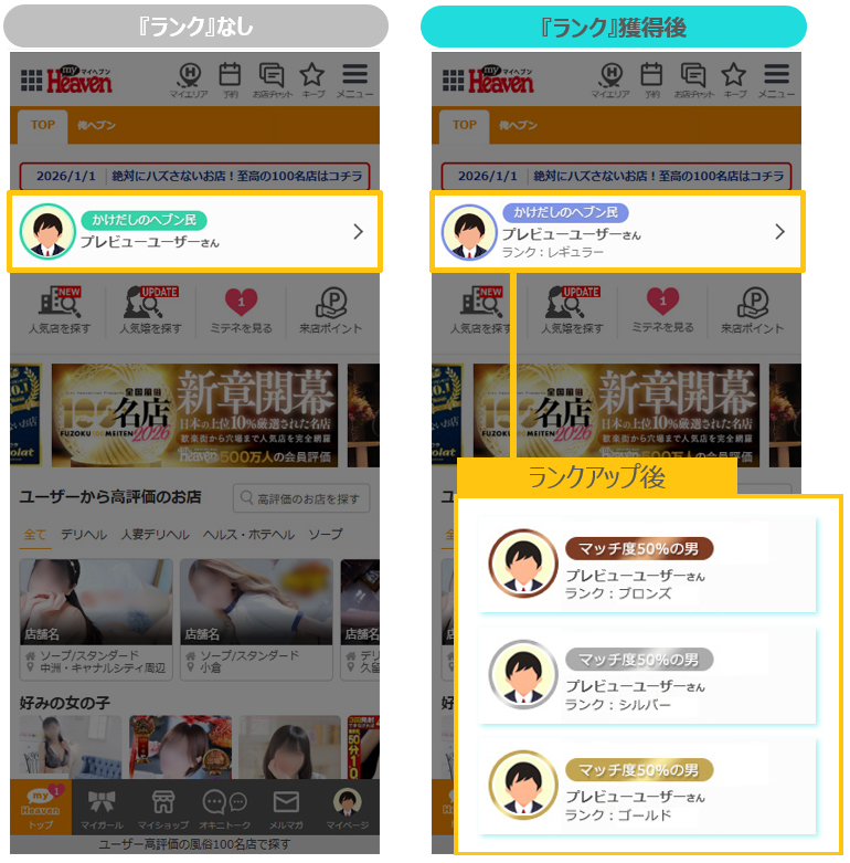 2024.11.26(火)に、ヘブンネットに『ユーザーランク』を導入します!