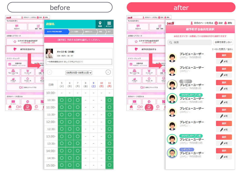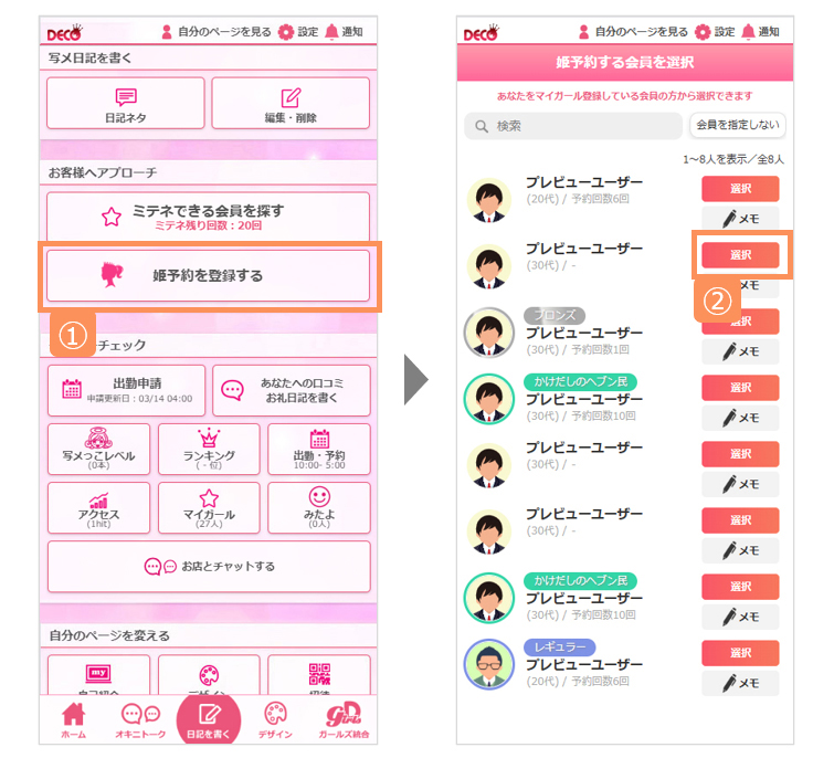 ユーザーを選択してからの姫予約【キャスト操作】