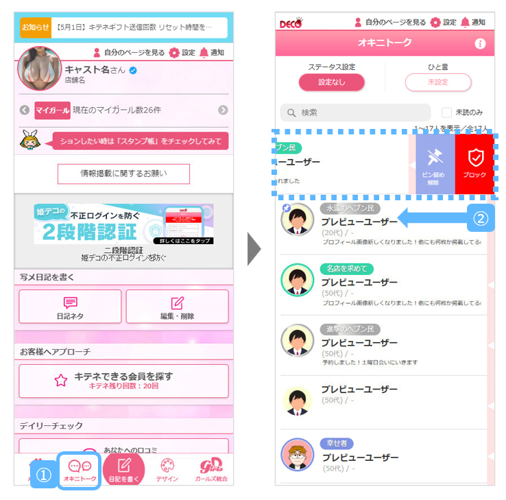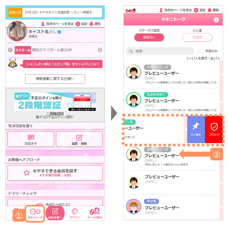 ご要望にお応えして2025.9.8(月)から、姫デコのオキニトーク画面およびマイガール_相互フォロー画面に、任意のユーザーを上位表示できる『ピン留め』機能を追加します。