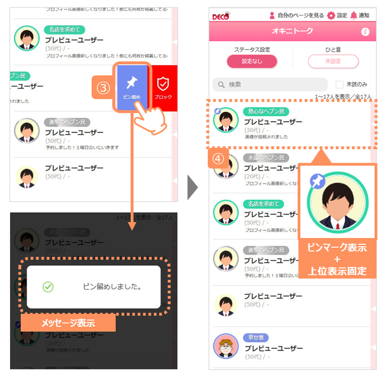 オキニトーク画面のピン留め機能と連動しています。