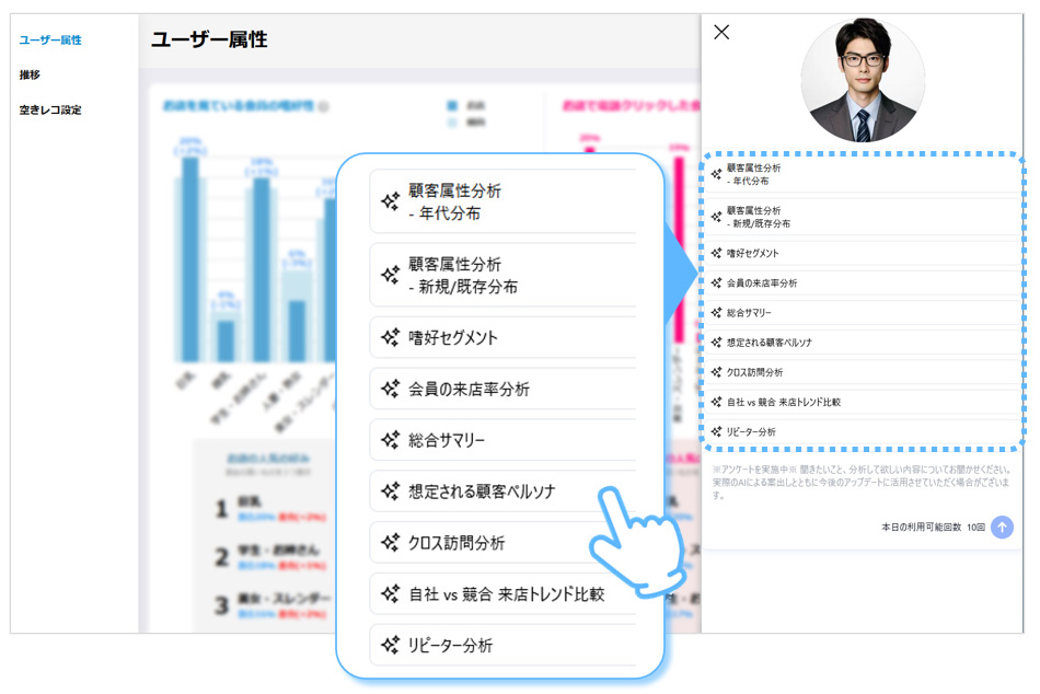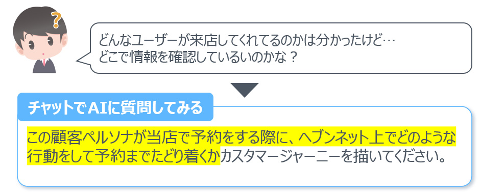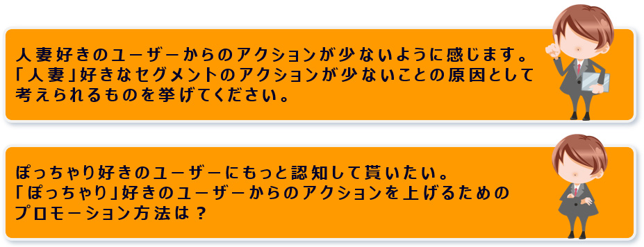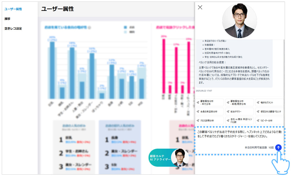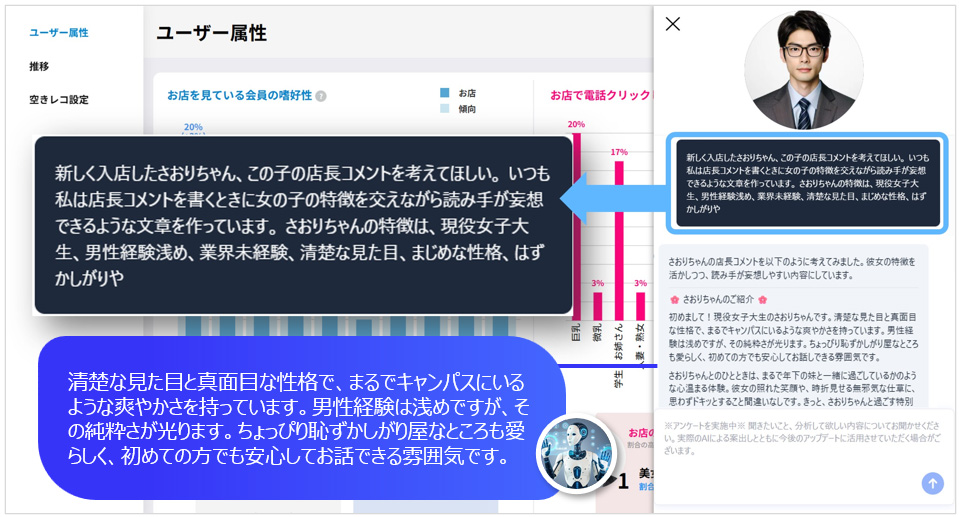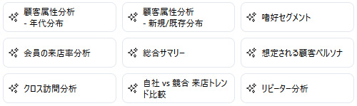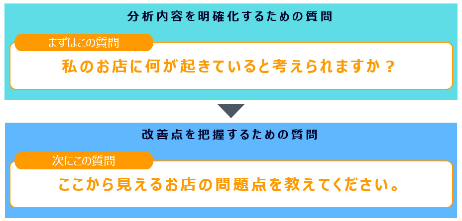 AIが[嗜好セグメント]分析によりお店の現状を把握した上で、更に内容を明確化して回答してくれます。