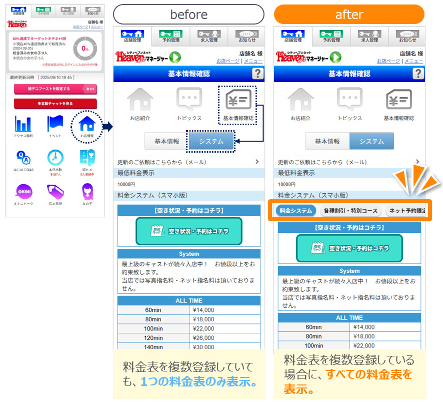 2025.10.21(火)に、スマホ版マネージャーの[基本情報確認_システム]画面で登録されている料金表をすべて閲覧できるようにします。