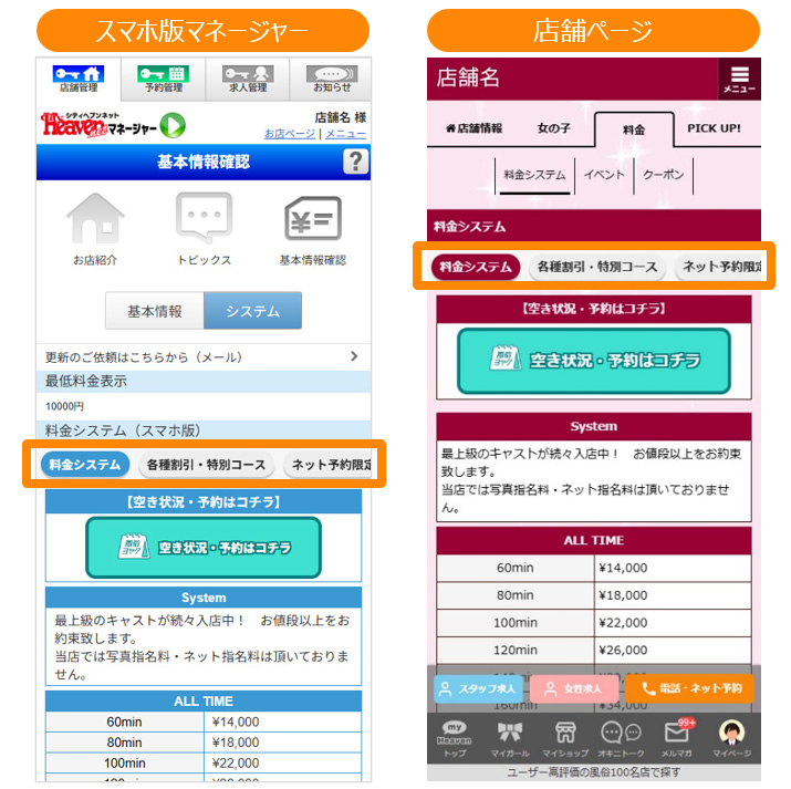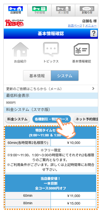 ▼店舗ページに表示されている料金システムと表示を合わせます。