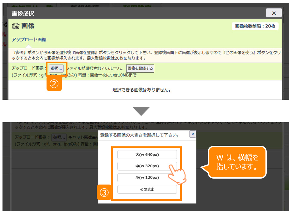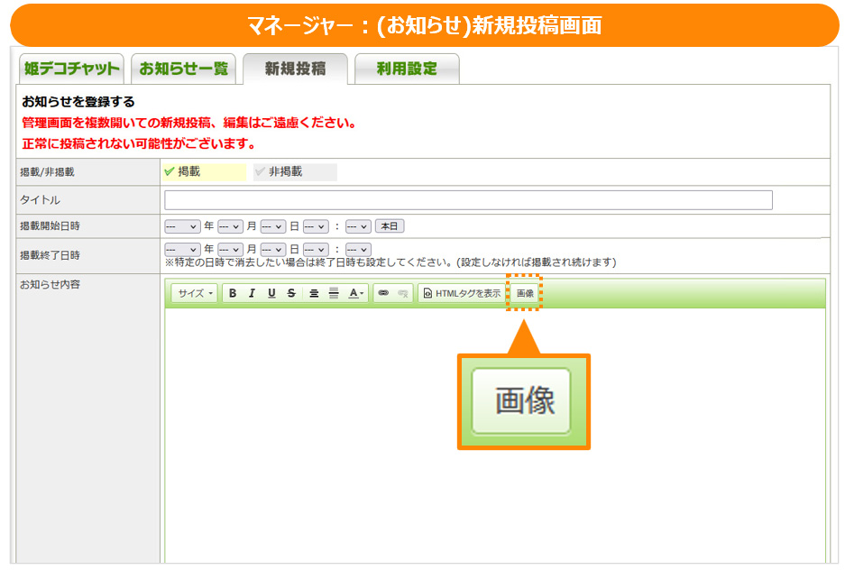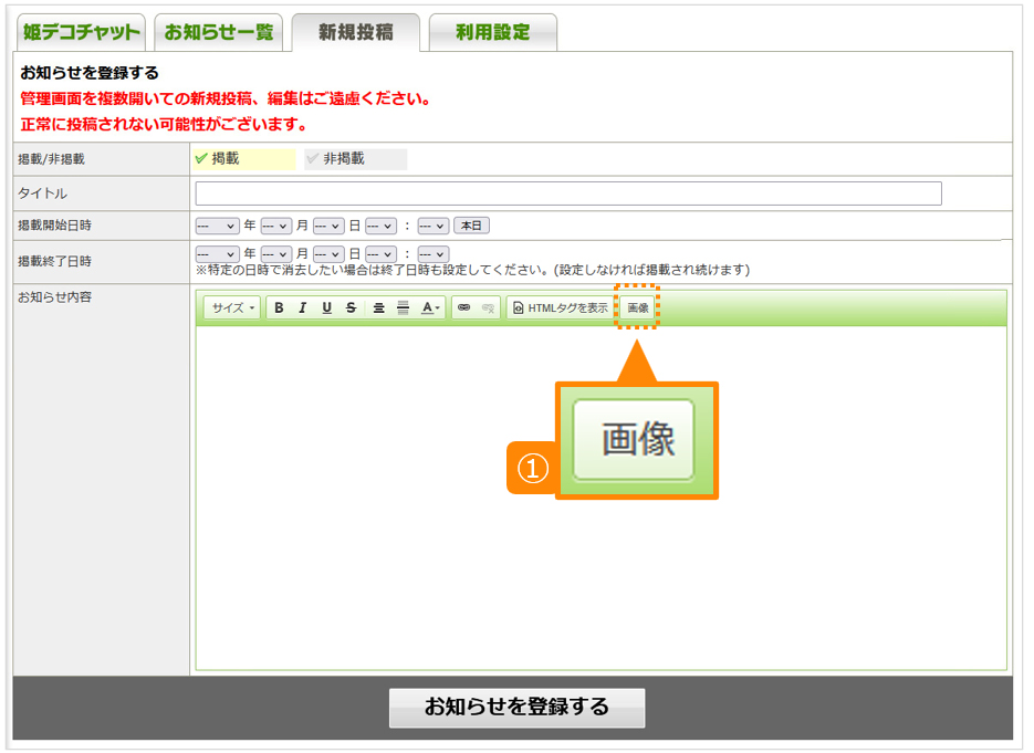 画像の送信方法『 (お知らせ)新規投稿画面』