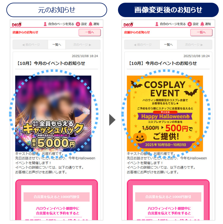 未投稿のお知らせでも、同じ画像を添付していた場合はすべて画像が差し替わります。