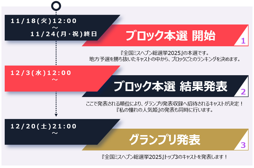 2025.11.18(火)12:00から開始される『全国ミスヘブン総選挙2025_ブロック本選』の内容をご紹介します!