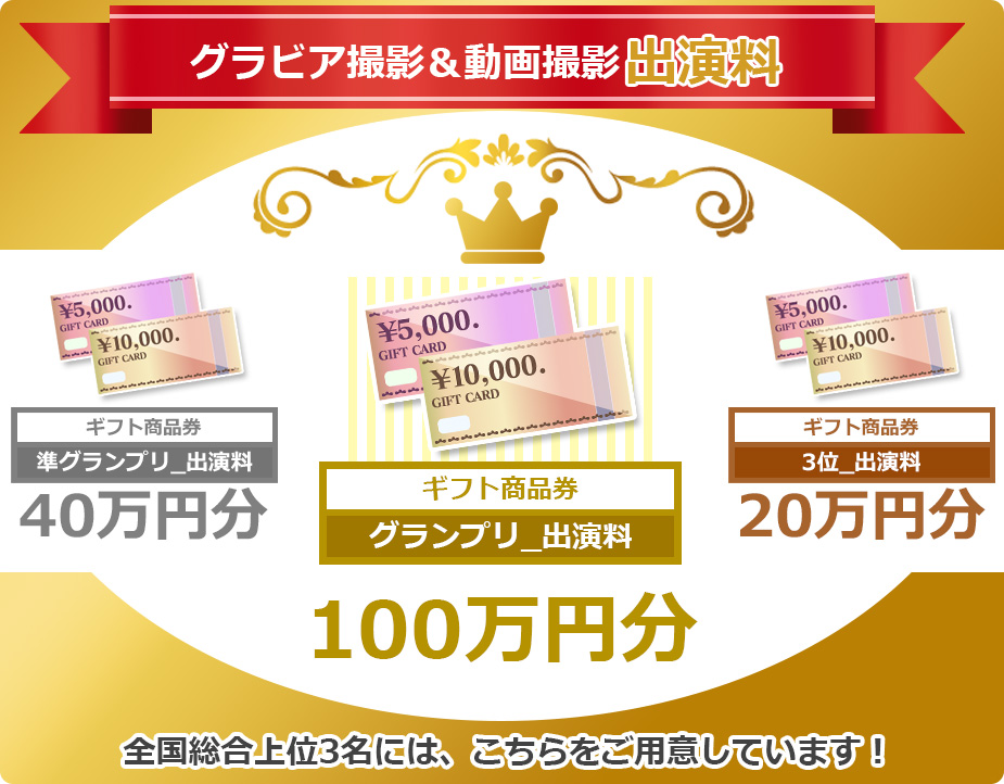 各グランプリ受賞者の皆様がグラビア撮影や動画撮影に参加された場合には、出演料をご用意しております。