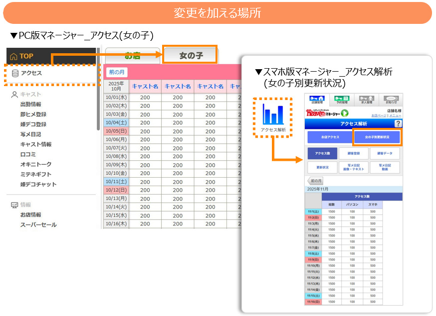 PC版マネージャー変更箇所