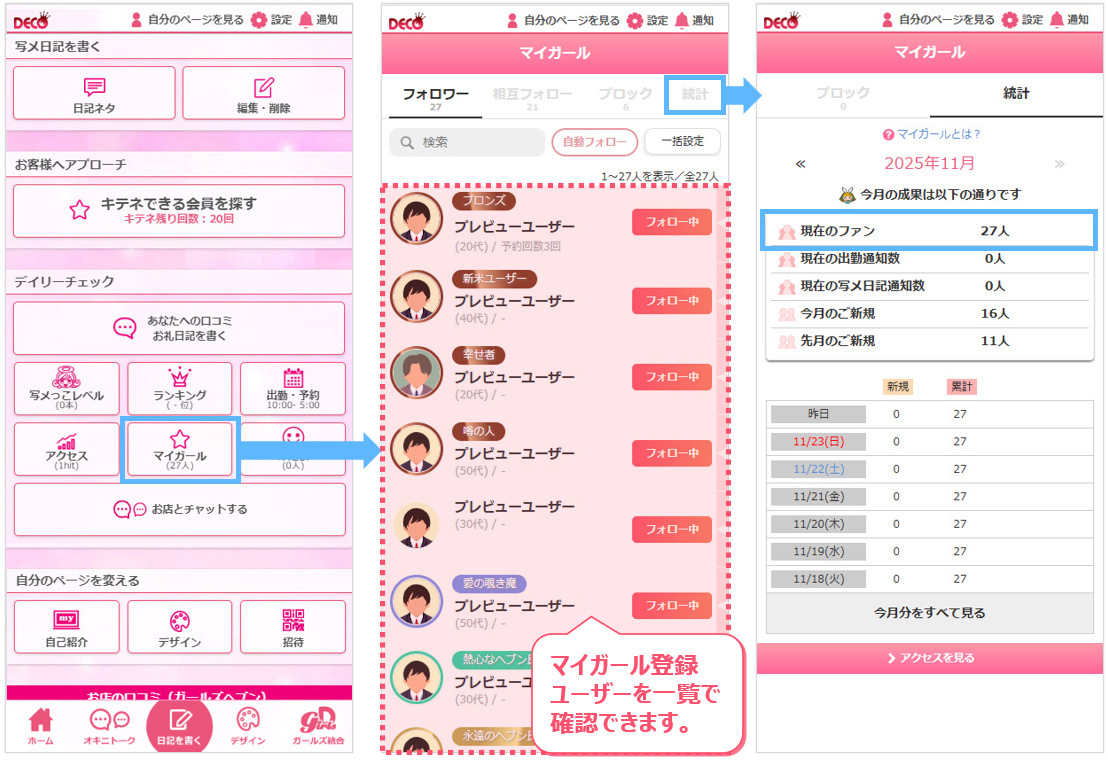 キャストが自身のマイガール数を把握できる画面はありますか?