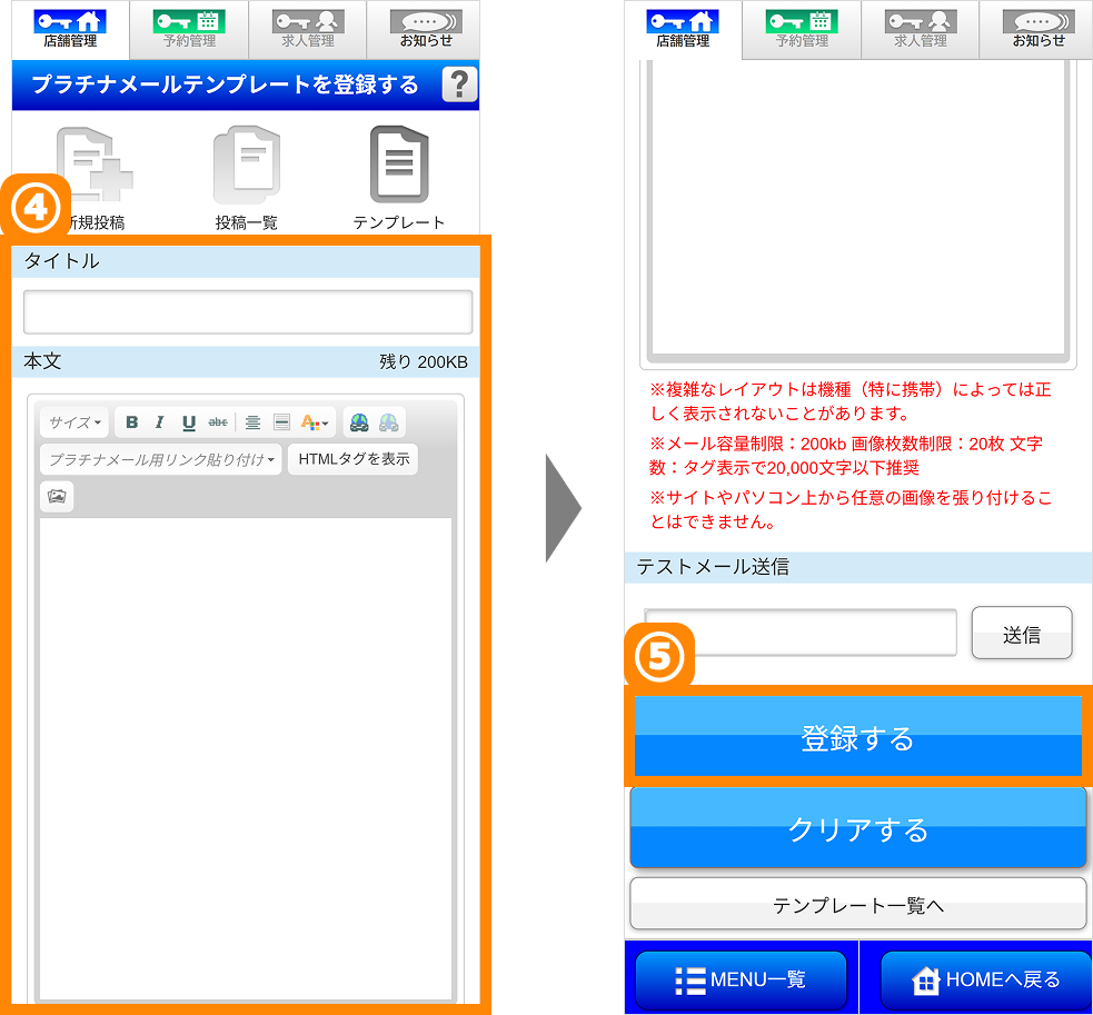 ⑤.[登録する]を押すことで、テンプレートを登録することができます。