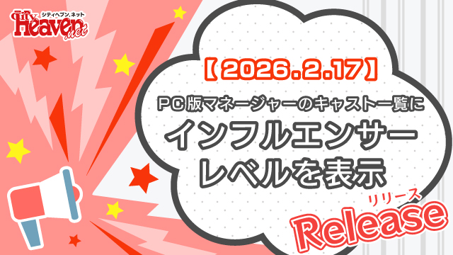 2026年2月17日(火)から、 PC版マネージャーのキャスト一覧にインフルエンサーレベルを表示します。